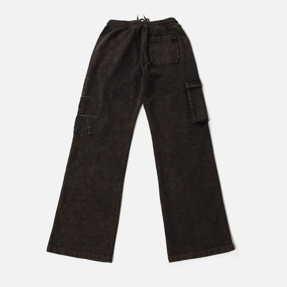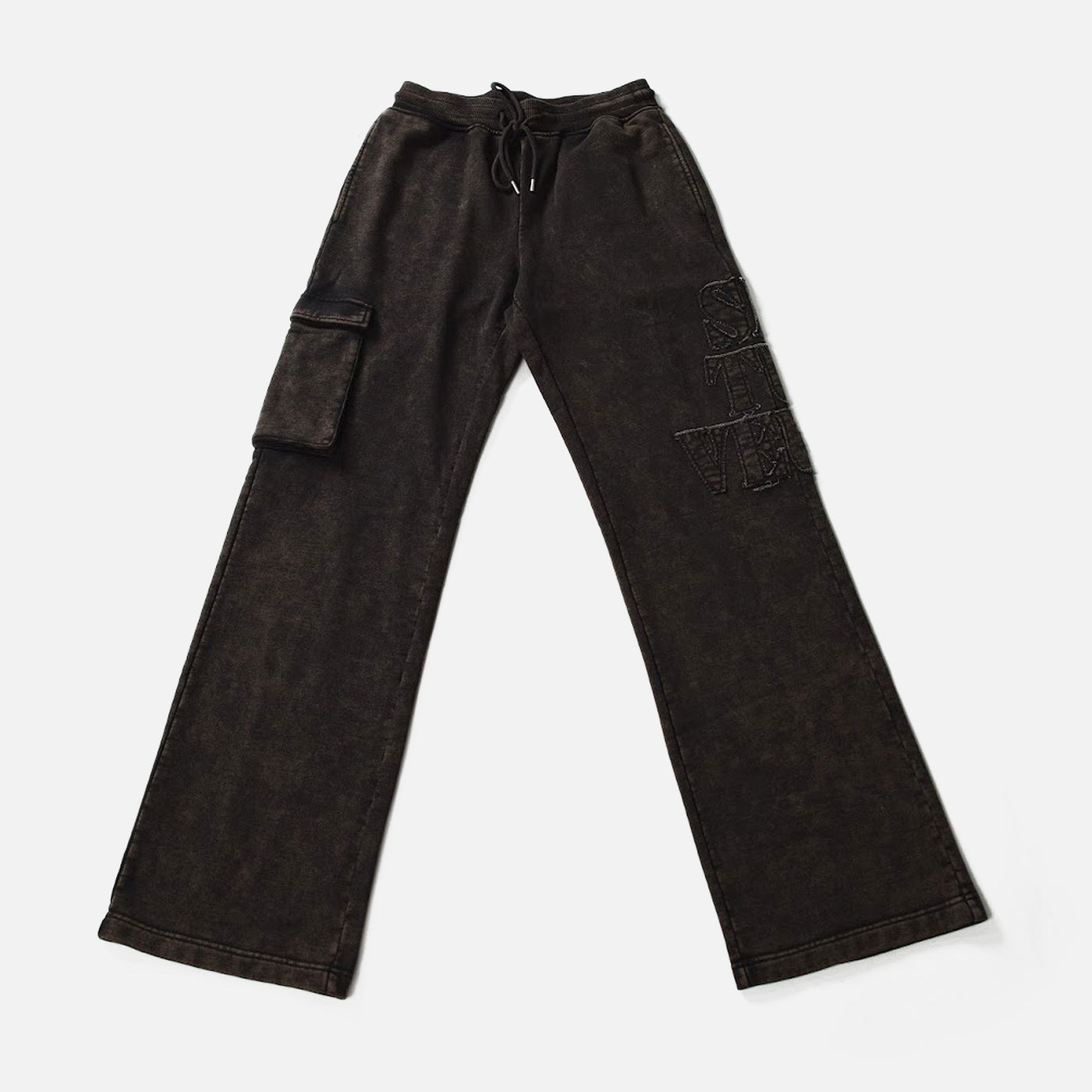 Key Features: 420 gram french terry. Loose straight fit athleisure bottom w/ A symmetrical cargo pocket. Vintage enzyme washed. with self raw edge applique detail.