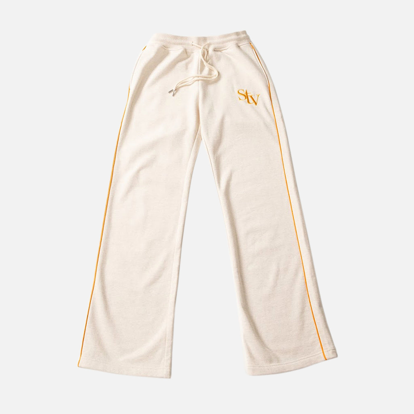 Key Features: 420 gram french terry. Loose straight atleisure bottom. Vintage enzyme washed. side seam contrast piping. Embroidered logo.![]()